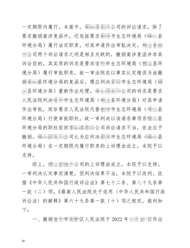 胜诉!企业在办理环评审批时,某行政机关未履行相应法定职责,原审判决结果不当,二审依法改判!